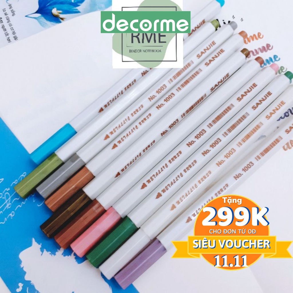 Bút brush pen, bút lông màu metalic ánh kim nhiều màu phụ kiện văn phòng phẩm SJ DecorMe free ship