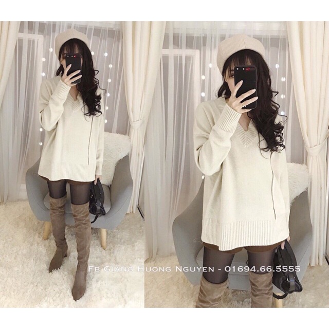 Freeship- Áo len cổ tim mua tại đây