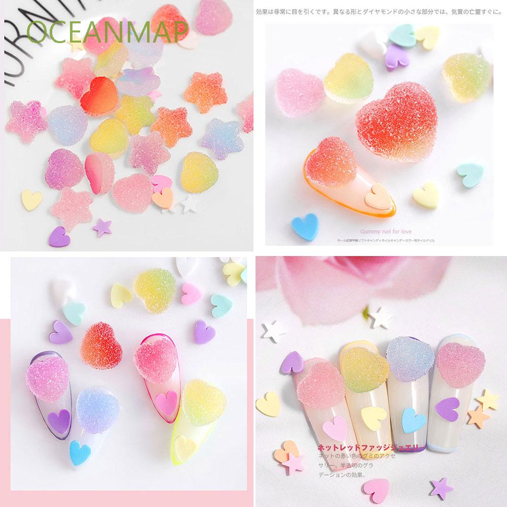 Phụ kiện trang trí móng tay 3D bằng acrylic hình ngôi sao/ trái tim màu gradient free ship