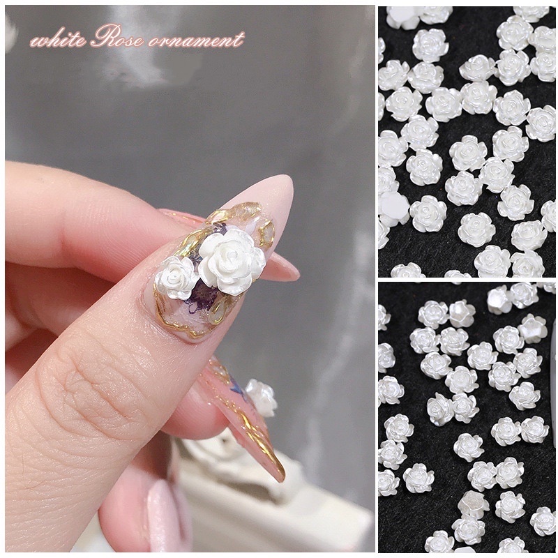 phụ kiện hoa hồng mix bi gắn móng tay nail 3 màu free ship